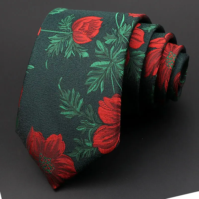 «Corbata roja satinada de flores: un accesorio elegante de 7 cm de ancho que combina el brillo sedoso del satinado con el encanto de las flores rojas, agregando estilo y sofisticación a cualquier atuendo.»