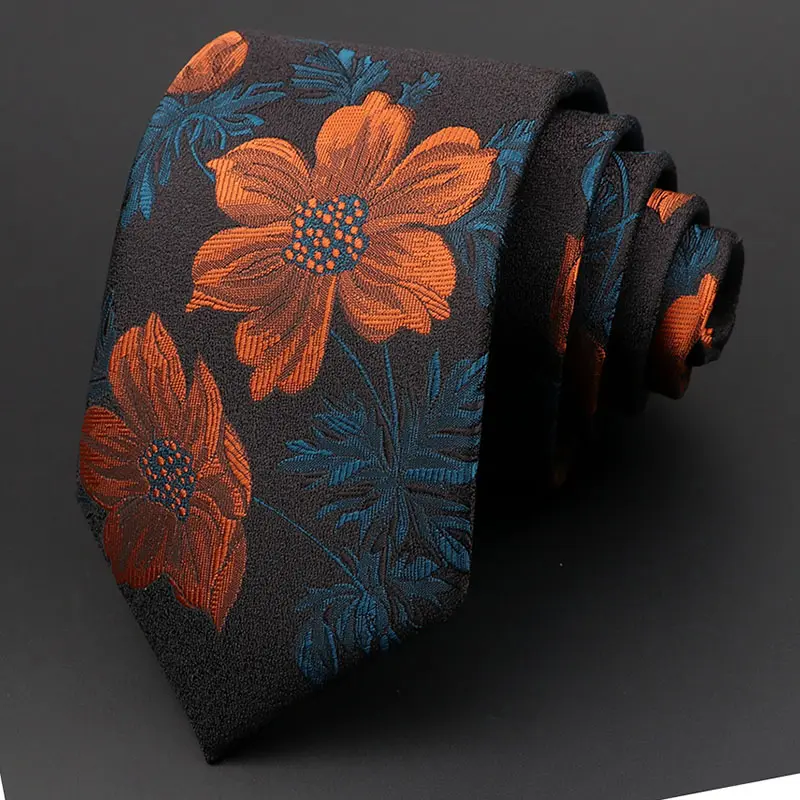 «Corbata azul de 7 cm de ancho con flores naranjas: una combinación elegante y llamativa que agrega estilo y color a tu atuendo.»